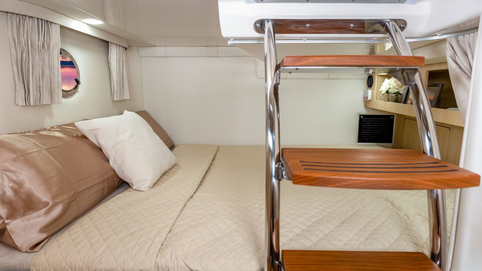 Verabschieden Sie sich von der Enge üblicher Nasszellen. Die 28 Express bietet Ihnen das größte Bad ihrer Klasse – ein Ort echter Privatsphäre mit vollen 1,83 m Stehhöhe (6 Fuß). Genießen Sie den Luxus, sich an Bord so frei zu bewegen wie zu Hause.