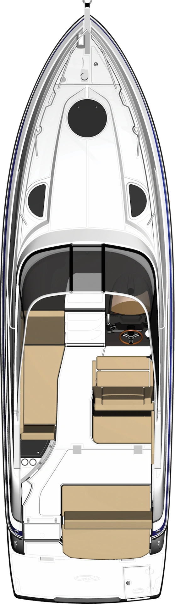 Rüsten Sie sich für maximale Leistung. Die Kombination aus dualen 9-Zoll Garmin Displays und dem serienmäßigen Bugstrahlruder verwandelt Ihren Steuerstand in eine Kommandozentrale, die Navigation und Manövrierbarkeit auf ein neues Level hebt.