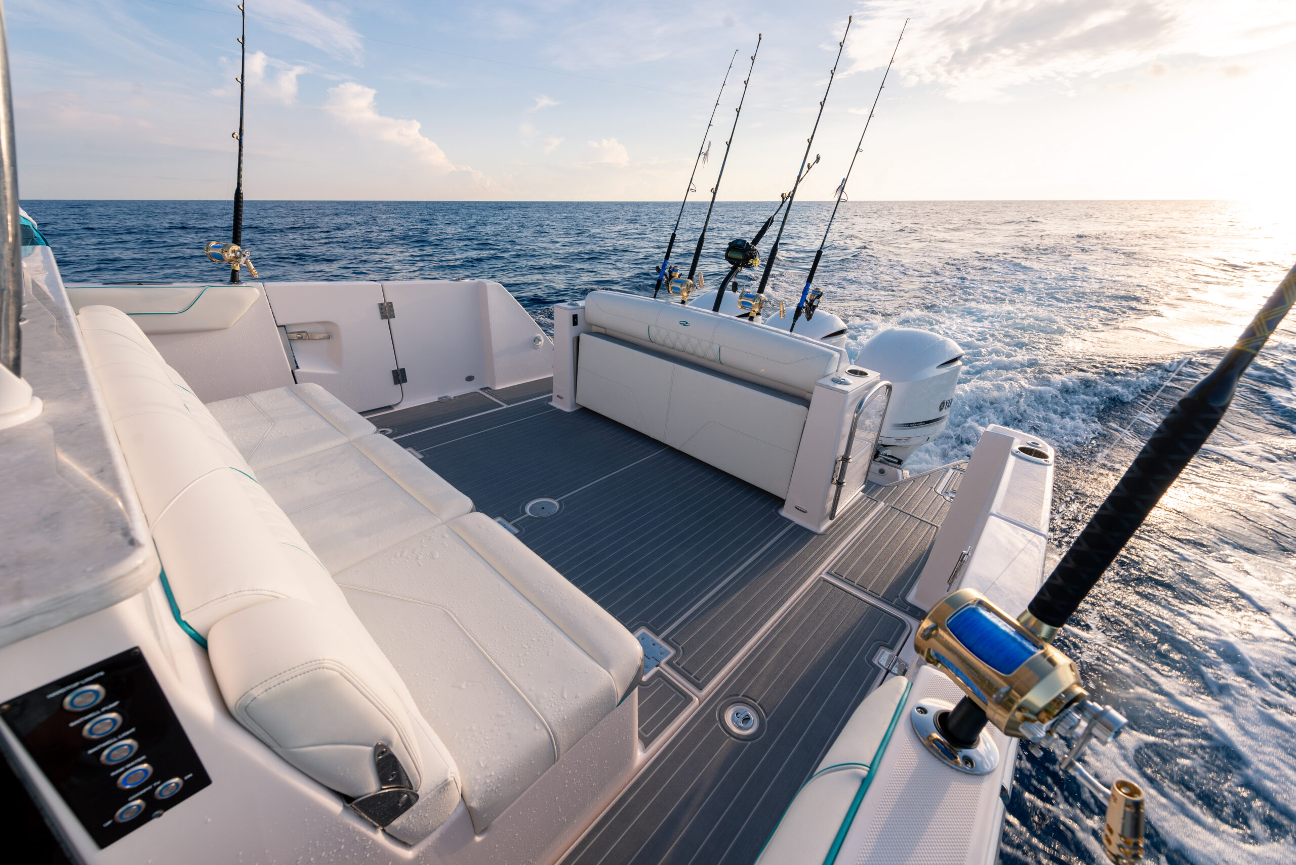 Außenbordantrieb und eine großzügige, rundum verlaufende Badeplattform treffen auf ergonomische Sitze und die neueste Technologie, um der Außenbord-Bowrider-Serie eine unvergleichliche Vielseitigkeit für Spaß und Abenteuer an jedem Ort zu verleihen.