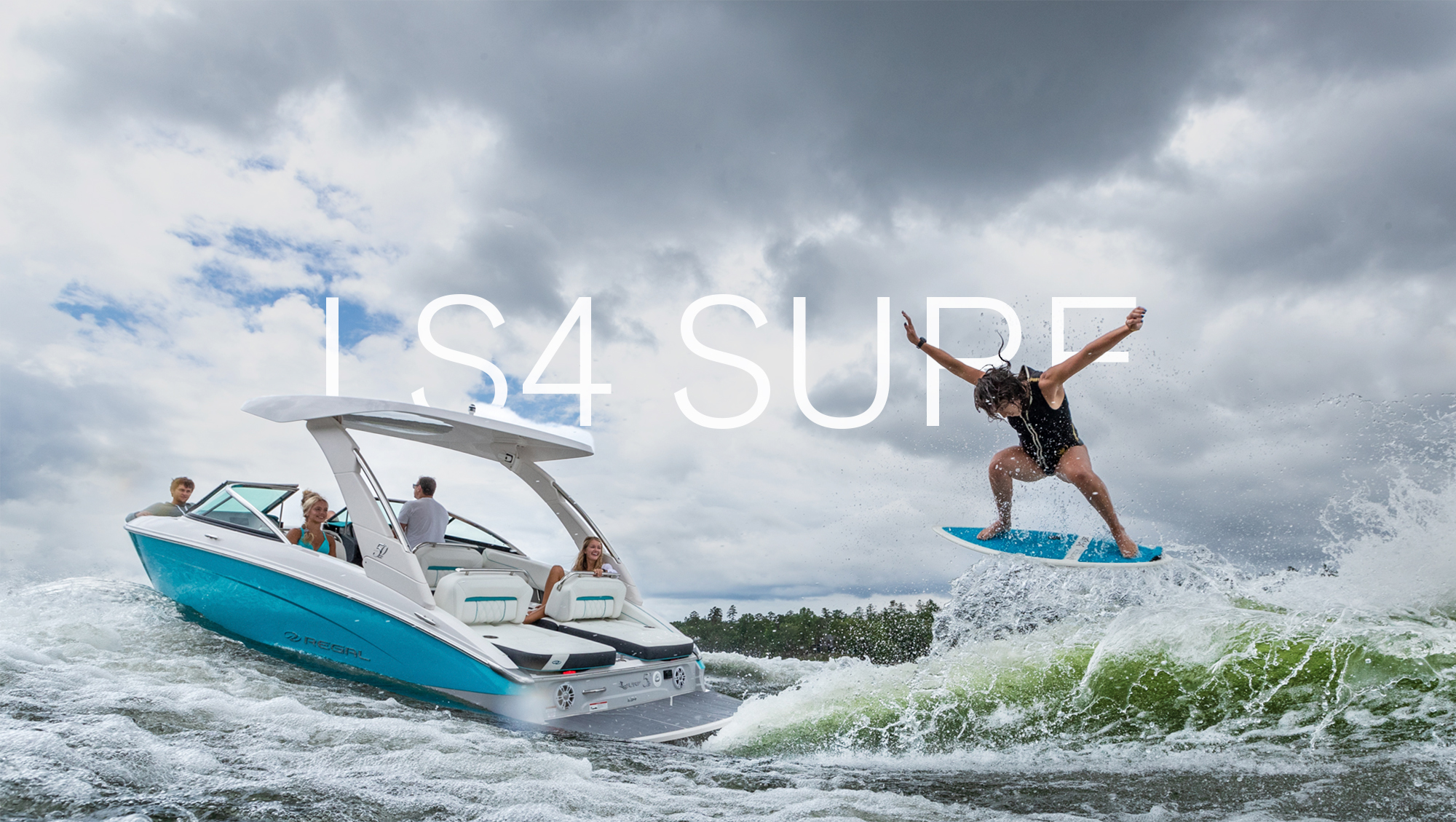 Mit einem intuitiven Wellenform-System schneidet die Regal Surf-Serie tief ins Wasser und schafft so ein einzigartiges Wake-Surf-Erlebnis auf Knopfdruck.