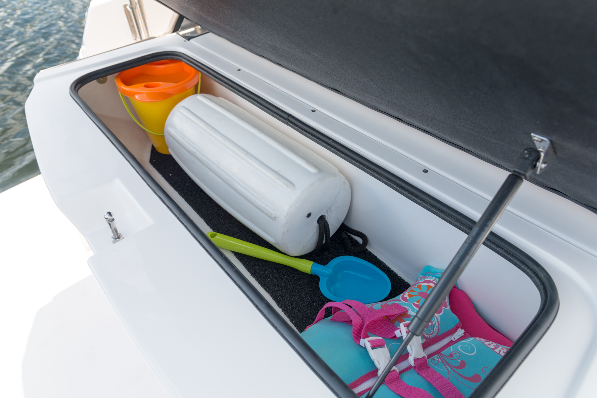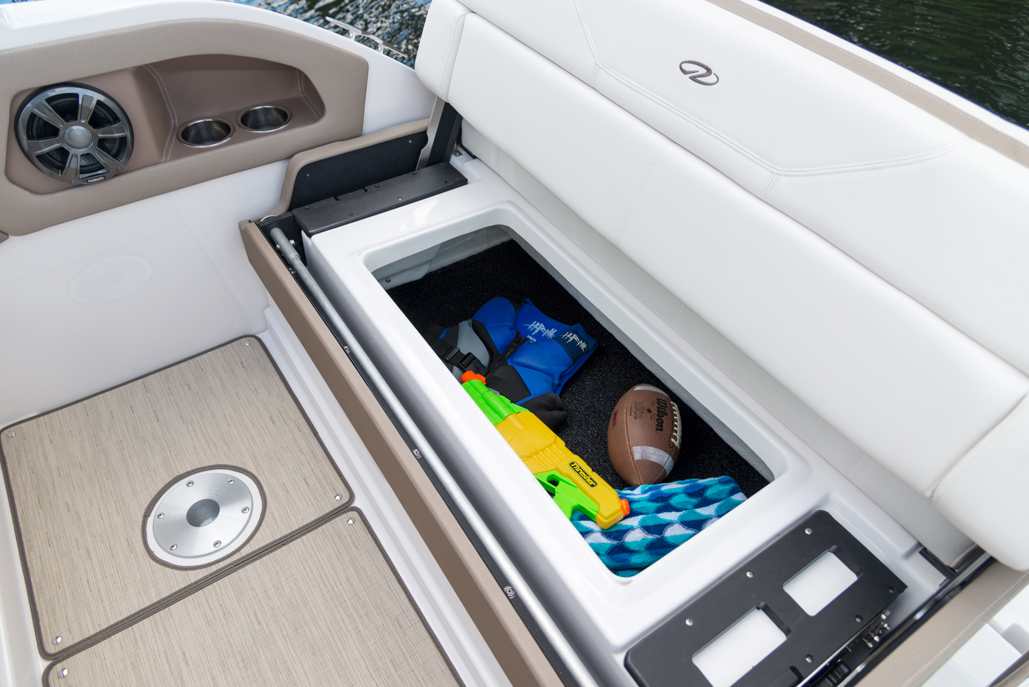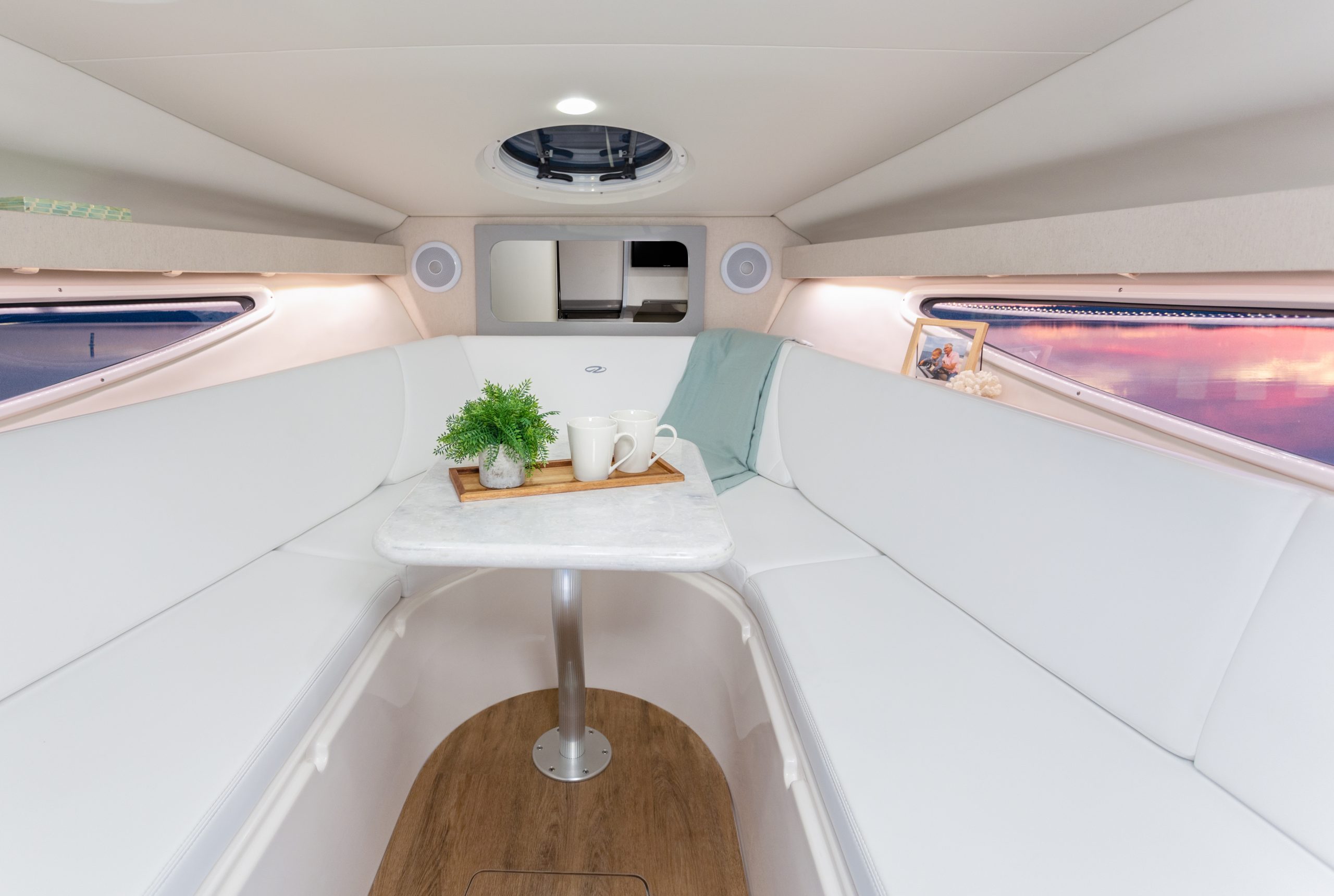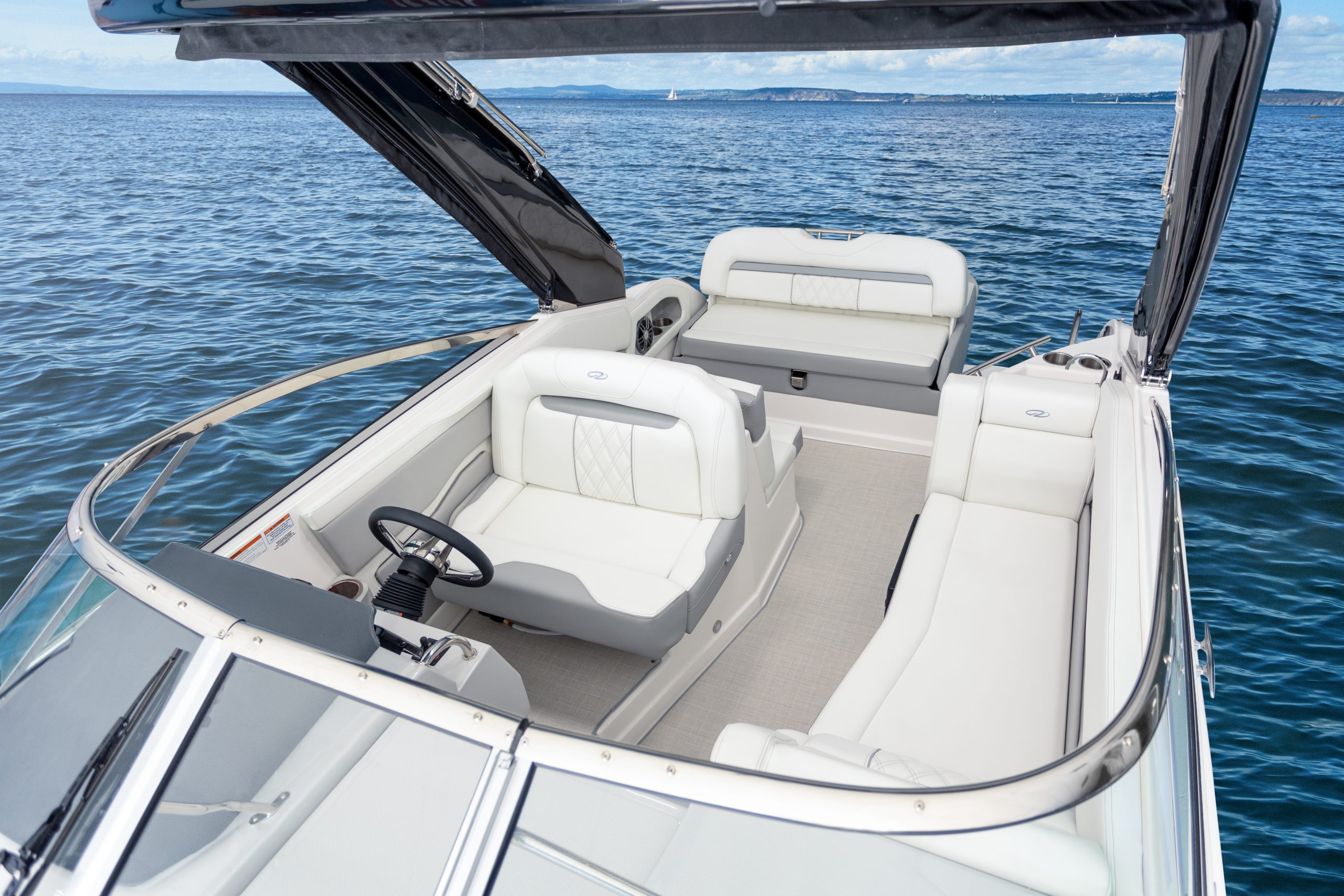 Rüsten Sie sich für maximale Leistung. Die Kombination aus dualen 9-Zoll Garmin Displays und dem serienmäßigen Bugstrahlruder verwandelt Ihren Steuerstand in eine Kommandozentrale, die Navigation und Manövrierbarkeit auf ein neues Level hebt.