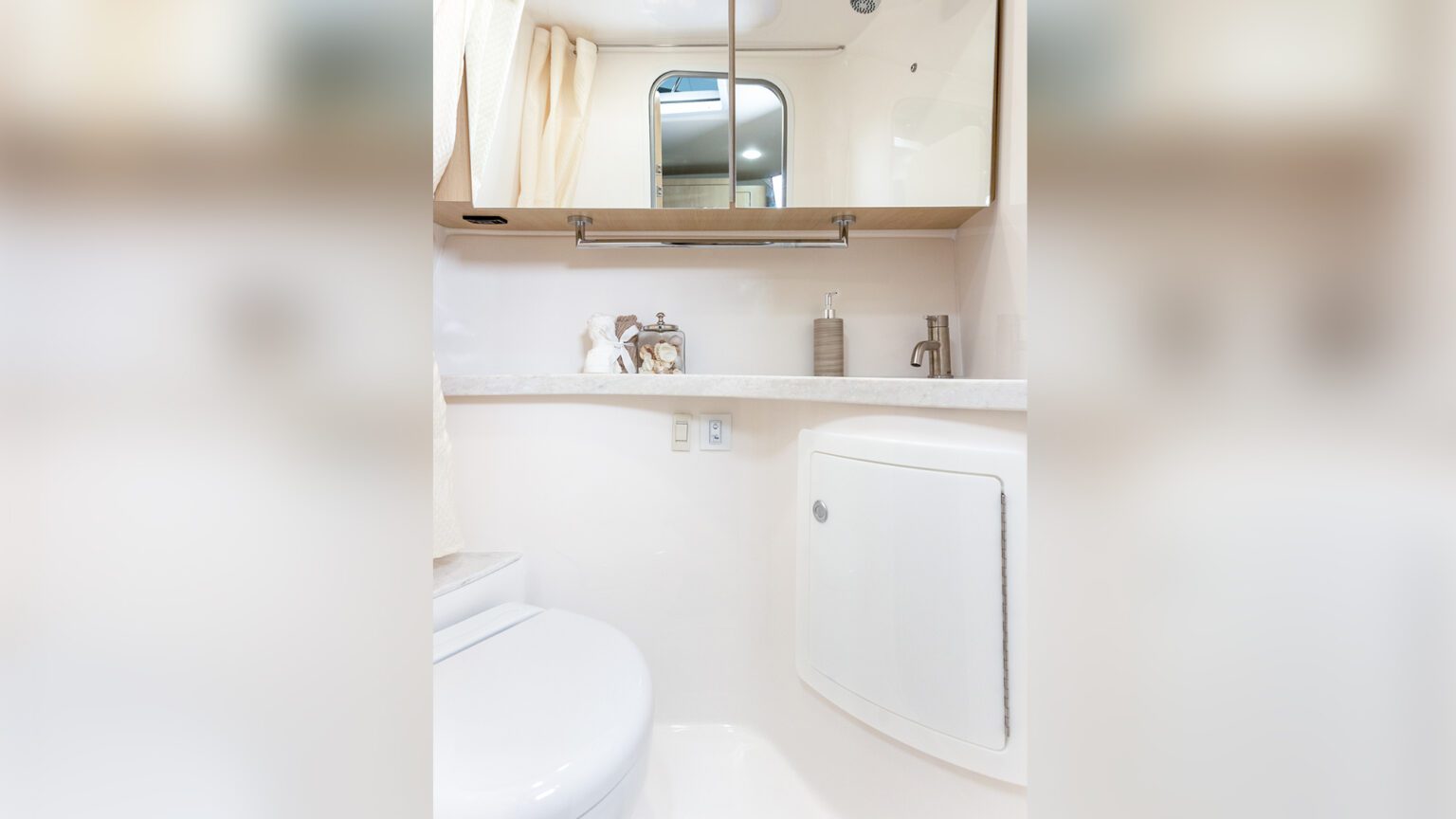 Verabschieden Sie sich von der Enge üblicher Nasszellen. Die 28 Express bietet Ihnen das größte Bad ihrer Klasse – ein Ort echter Privatsphäre mit vollen 1,83 m Stehhöhe (6 Fuß). Genießen Sie den Luxus, sich an Bord so frei zu bewegen wie zu Hause.