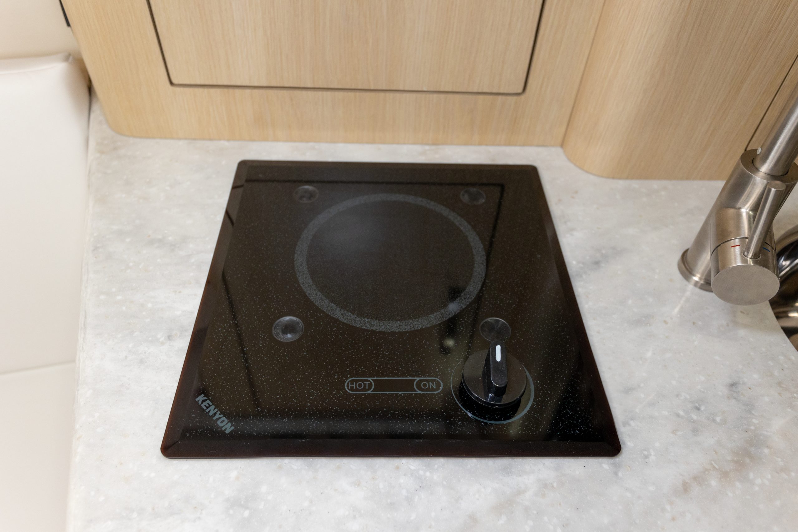 Eine Pantry, die keine Wünsche offenlässt. Nutzen Sie die hochwertige Ausstattung der 28 Express, die unter anderem ein Elektrokochfeld, einen Edelstahl-Kühlschrank und eine Mikrowelle umfasst. Funktionalität und Design in harmonischer Einheit.
