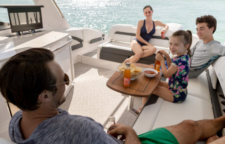 Mit Regals verstellbaren Social Seating, einem praktischen Transom-Walk-Thru, großzügigen UltraLounges und ausreichend Stauraum für all Ihre Gäste.