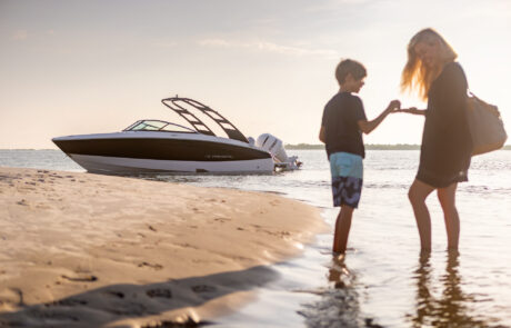 Erweitern Sie Ihr Abenteuer mit einem geräumigen Regal Outboard Bowrider. Die cleveren Innovationen dieser Serie bereichern nicht nur Ihr Regal Bootserlebnis, sondern kommen auch Ihren Mitreisenden zugute. Offene Layouts und ergonomische Sitze sorgen dafür, dass Sie sich zurücklehnen, entspannen und mehr Zeit auf dem Wasser genießen können.