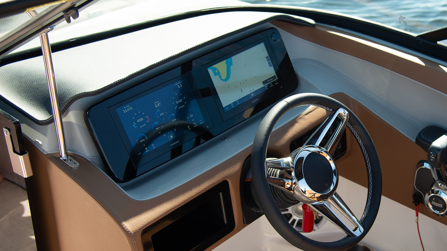 Hinterlassen Sie einen bleibenden Eindruck – nicht nur optisch, sondern auch akustisch. Mit dem Premium Fusion Audio System genießen Sie eine Klangqualität, die keine Wünsche offenlässt. Die im gesamten Boot präzise platzierten Fusion Marine Lautsprecher hüllen Sie in ein glasklares Klangbild. Ob entspannte Lounge-Beats zum Sonnenuntergang oder dynamischer Sound für die Fahrt – erleben Sie Audio-Performance auf Yacht-Niveau.