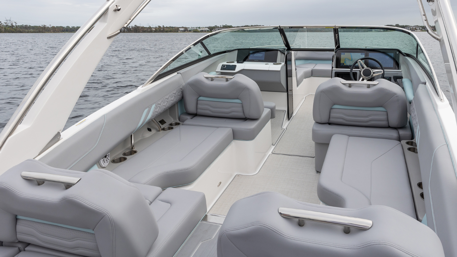 Genießen Sie den Luxus eines barrierefreien Heckeinstiegs. Der Transom Walk-Thru macht das Einsteigen so bequem wie nie zuvor und sorgt gleichzeitig dafür, dass Ihre exklusive Polsterung geschützt und sauber bleibt. Ein intelligentes Feature für ein gepflegtes Ambiente und maximale Bequemlichkeit an jedem Tag auf dem Wasser.