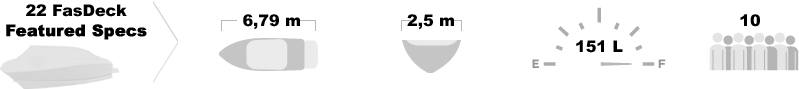 Die Sitzbank im Heck lädt die ganze Familie ans Wasser ein. Darüber hinaus verfügt Sie über einen klappbaren Sitz, der das Einsteigen erlichtert. Der FasTrac Rumf und die „SocialSeating“ Aufteilung ermöglicht eine reibungslose Fahrt für bis zu 10 Personen. Nachdem Sie das Raumgefühl und den möglichen Familienspaß auf dieser 22 FasDeck gespürt haben, wird ihnen auffallen, dass Ihnen dieses Boot gefehlt hat.